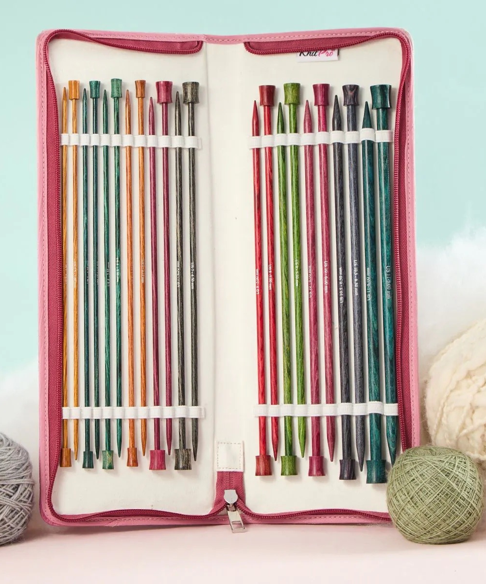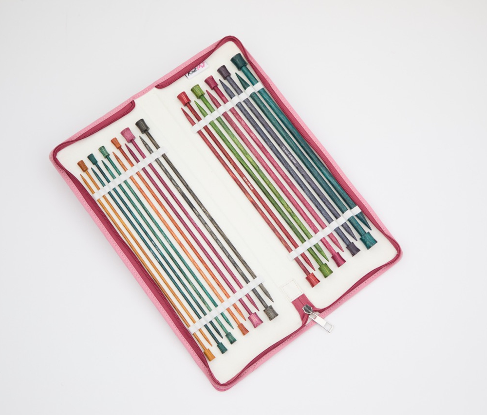 Renk kodlu örgü şişleri, güzel, fermuarlı bir Pembe kumaş çanta içinde paketlenmiştir. Hem yeni başlayanlar hem de deneyimli örgücüler için mükemmel bir seçenektir.